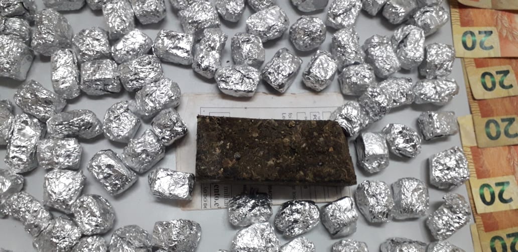 São 206 pedras de uma substância semelhante a maconha, uma barra de maconha